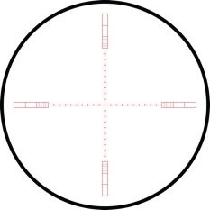 20х 1/2 Mil Dot IR - удобная универсальная сетка для максимально точного прицеливания на различных расстояниях. Главное отличие от обычной прицельной марки Mil Dot состоит в том, что тут имеются дополнительные пересечения, отмечающие пол мила. Все компоненты этой сетки имеют строго регламентированные размеры, расстояния между всеми элементами также регламентированы. Благодаря этому не проблема определить расстояние до цели либо размеры цели, приняв при этом правильную поправку на ветер и определить траекторию падения пули. Данный 1/2 Mil Dot верен при 20-кратном увеличении. Для других увеличений линейные и угловые размеры определяются методом интерполяции, либо по специальным таблицам. Персональную адаптацию сетки под конкретное оружие и тип снаряда позволит совершить бесплатный баллистический калькулятор X-ACT