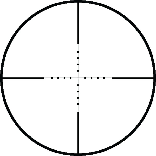Mil Dot - одна из самых универсальных прицельных сеток, все компоненты этой сетки имеют строго регламентированные размеры, расстояния между всеми элементами также регламентированы. Благодаря этому не проблема определить расстояние до цели, приняв при этом правильную поправку на ветер и определить траекторию полета и падения пули. Данный Mil Dot верен при 10-кратном увеличении. Для других увеличений линейные и угловые размеры определяются методом интерполяции, либо по специальным таблицам. Персональную адаптацию сетки под конкретное оружие и тип снаряда позволит совершить бесплатный баллистический калькулятор X-ACT