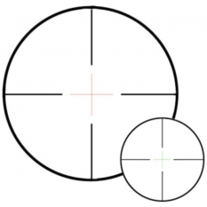 - Подсветка прицельной сетки: красная/зеленая, регулируемая, по 5 уровней яркости для каждого цвета