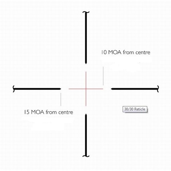• Прицельная сетка:  30/30 Centre Cross IR (гравированная)