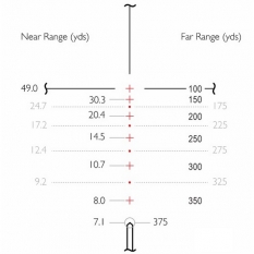 Rimfire .17 HMR - специальная сетка, разработанная компанией Hawke Optics для спортивной стрельбы и охоты на мелкую дичь. Сетка максимально точно специализирована под винтовки для стрельбы патронами кольцевого воспламенения .17 HMR (Калибр 4,37) с высокой начальной скоростью полета пули 775 м/с, с высотой установки прицела 45 мм. Сетка имеет перекрестие типа Duplex со специальной разметкой, благодаря которой можно вести прицельную стрельбу с шагом в 25 ярдов. Единожды пристреляв прицел на расстояние 100 ярдов, с помощью данной прицельной сетки можно легко определять траекторию пули на расстоянии до 350 ярдов. Таким образом, максимальная дальность расчета траектории пули сходна с эффективной дальностью стрельбы патроном .17 HMR. Параметры данной сетки верны при максимальном увеличении 12х. Данная прицельная сетка чрезвычайно проста и удобна и может использоваться с успехом также для стрельбы из пневматического оружия. Персональную адаптацию сетки под конкретное оружие и тип снаряда позволит совершить бесплатный баллистический калькулятор X-ACT
