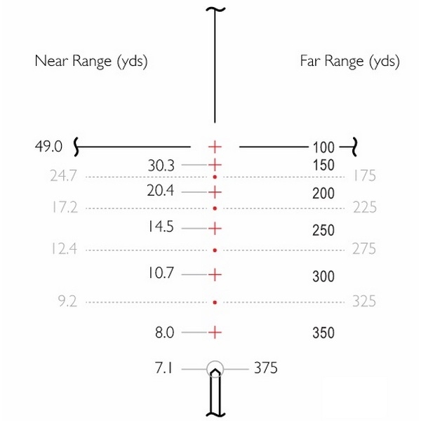 Rimfire .17 HMR - специальная сетка, разработанная компанией Hawke Optics для спортивной стрельбы и охоты на мелкую дичь. Сетка максимально точно специализирована под винтовки для стрельбы патронами кольцевого воспламенения .17 HMR (Калибр 4,37) с высокой начальной скоростью полета пули 775 м/с, с высотой установки прицела 45 мм. Сетка имеет перекрестие типа Duplex со специальной разметкой, благодаря которой можно вести прицельную стрельбу с шагом в 25 ярдов. Единожды пристреляв прицел на расстояние 100 ярдов, с помощью данной прицельной сетки можно легко определять траекторию пули на расстоянии до 350 ярдов. Таким образом, максимальная дальность расчета траектории пули сходна с эффективной дальностью стрельбы патроном .17 HMR. Параметры данной сетки верны при максимальном увеличении 16х. Данная прицельная сетка чрезвычайно проста и удобна и может использоваться с успехом также для стрельбы из пневматического оружия. Персональную адаптацию сетки под конкретное оружие и тип снаряда позволит совершить бесплатный баллистический калькулятор X-ACT