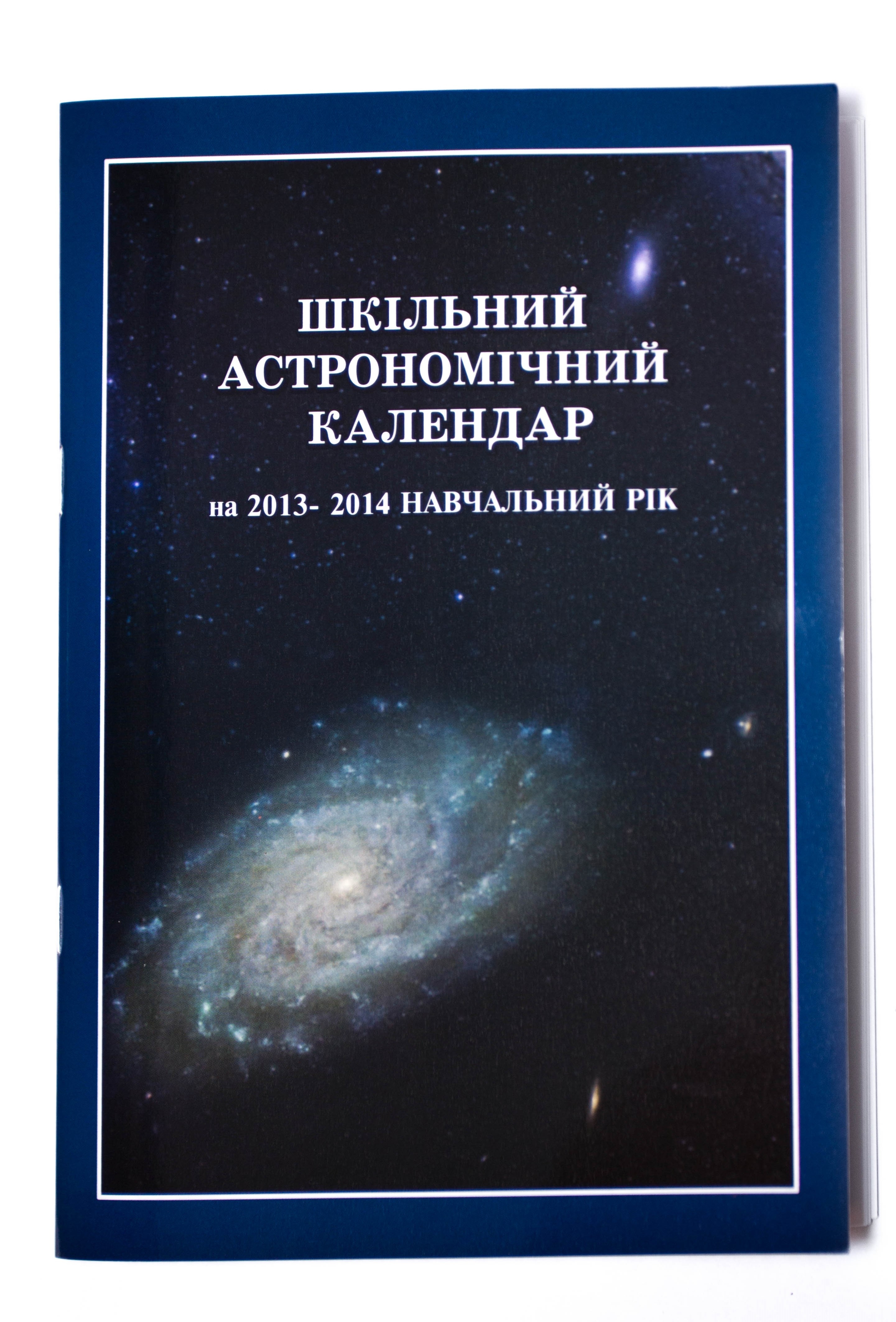 Школьный астрономический календарь на 2013-2014 учебный год. В справочнике наблюдателя на каждый месяц (с сентября 2013 по август 2014 включительно) дано: описание звёздного неба, а также информация про астрономические явления, которые можно наблюдать в бинокль или в небольшие любительские телескопы - солнечные, лунные затмения, покрытия звёзд и планет Луной, покрытия звёзд астероидами, появление комет, видимость метеорных потоков, конфигурации четырёх спутников Юпитера. Приведена информация про восход и заход Солнца и Луны, данные про видимость планет в созвездиях и пр. На украинском языке.