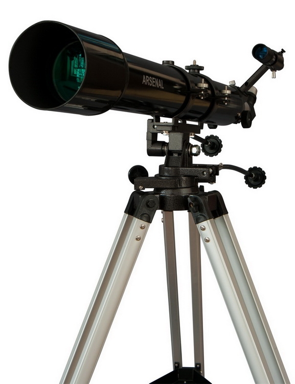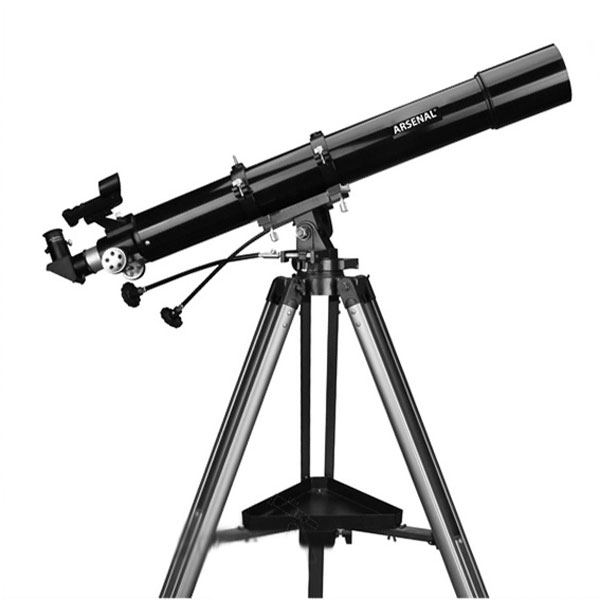 Телескоп Arsenal 90/900 AZ3 - классический рефракторный телескоп. 90-мм объектив собирает достаточное количество света для светлой и яркой картинки ночного неба. Телескоп установлен на простую в управлении азимутальную монтировку. Штатив регулируемый (71-123см), имеет полочку для аксессуаров.