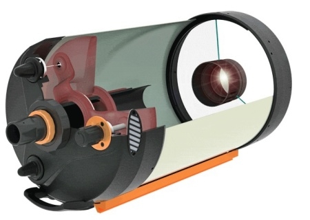Новаторский телескоп Шмидта-Кассегрена с модифицированной апланатической, асферической пластиной корректора. Новая технология названная EDGE-HD позволяет получить плоское и лишенное дефектов поле изображения, которое идеально подходит для астрофотографии. Новая система, в частности, уменьшает кому и улучшает разрешение на краю поля. Новая система позволяет Вам получить отличные результаты даже в случае применения широкоформатных CCD камер - резкое изображение получается даже на матрицах с диагональю 52 мм. По сравнению со стандартными телескопами, телескопы EDGE-HD также имеют ряд новых механических свойств. В задней части трубы сделаны отверстия в которые вставлены специальные фильтры для предотвращения попадания пыли при охлаждении телескопа. Все EDGE-HD телескопы оснащены системой Fastar CCD , позволяющей камере помещается непосредственно в прямом фокусе телескопа. Телескоп поставляется с экваториальной монтировкой CGE Pro с компьютерным наведением на стальном 2-дюймовом штативе с полочкой для аксессуаров. В комплекте также идёт, обновляемый через Интернет, пульт управления с базой данных на 40 000 объектов. Присутствуют порты для автогида и дополнительных устройств.