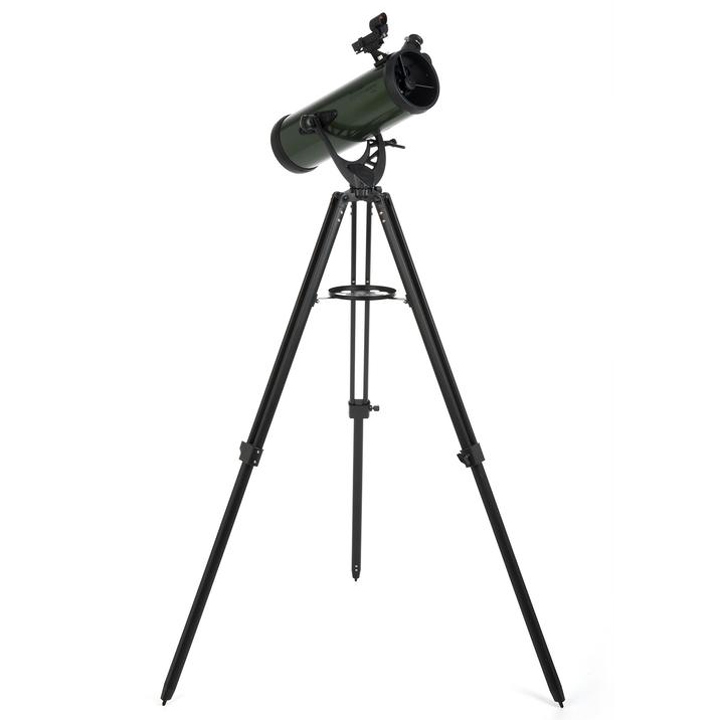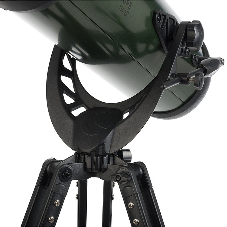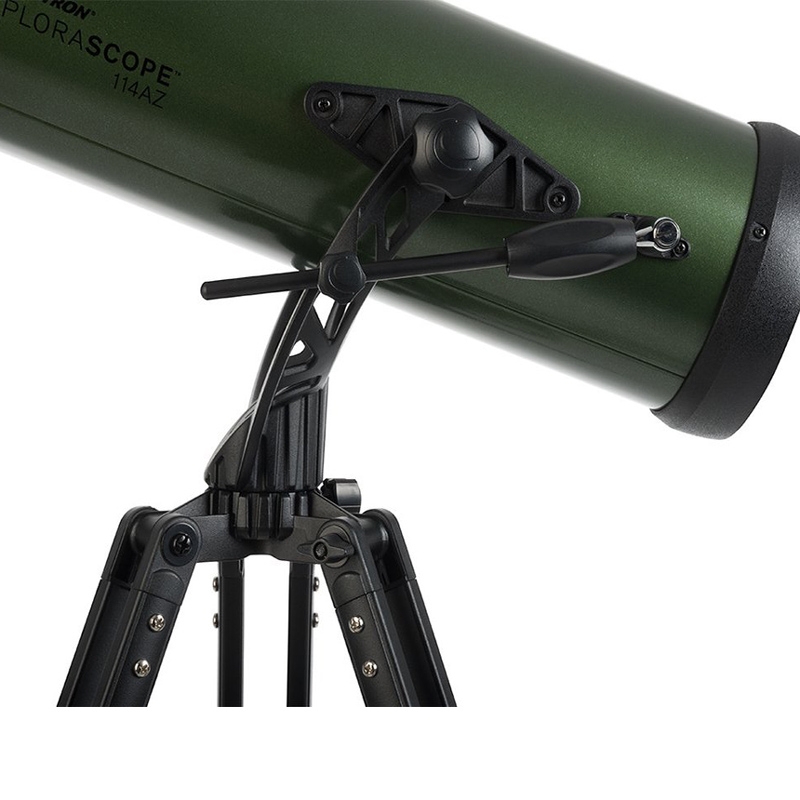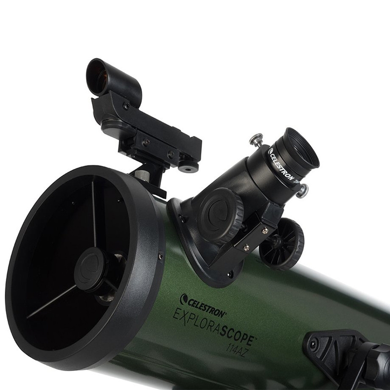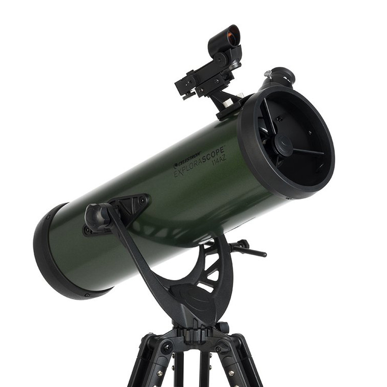 Телескоп системы Ньютона Celestron ExploraScope 114 AZ – самый мощный из серии, рассчитанной на начинающих любителей астрономии. Диаметр главного зеркала – 114 мм, фокусное расстояние – 1000 мм: с окулярами из комплекта телескоп позволяет рассматривать все объекты каталога Мессье и большую часть объектов общего NGC-каталога.
