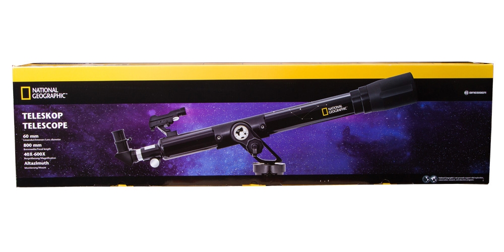 Телескоп National Geographic 60/800 AZ - длиннофокусный ахроматический рефрактор для детей и начинающих астролюбителей. Телескоп устанавливается на простую в обращении азимутальную полувилочную монтировку с микрометрическим наведением по высоте, с которой сможет справиться даже ребенок или подросток.