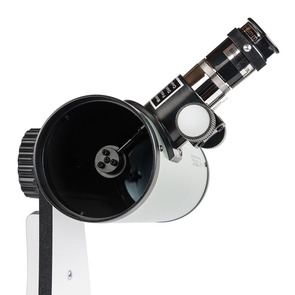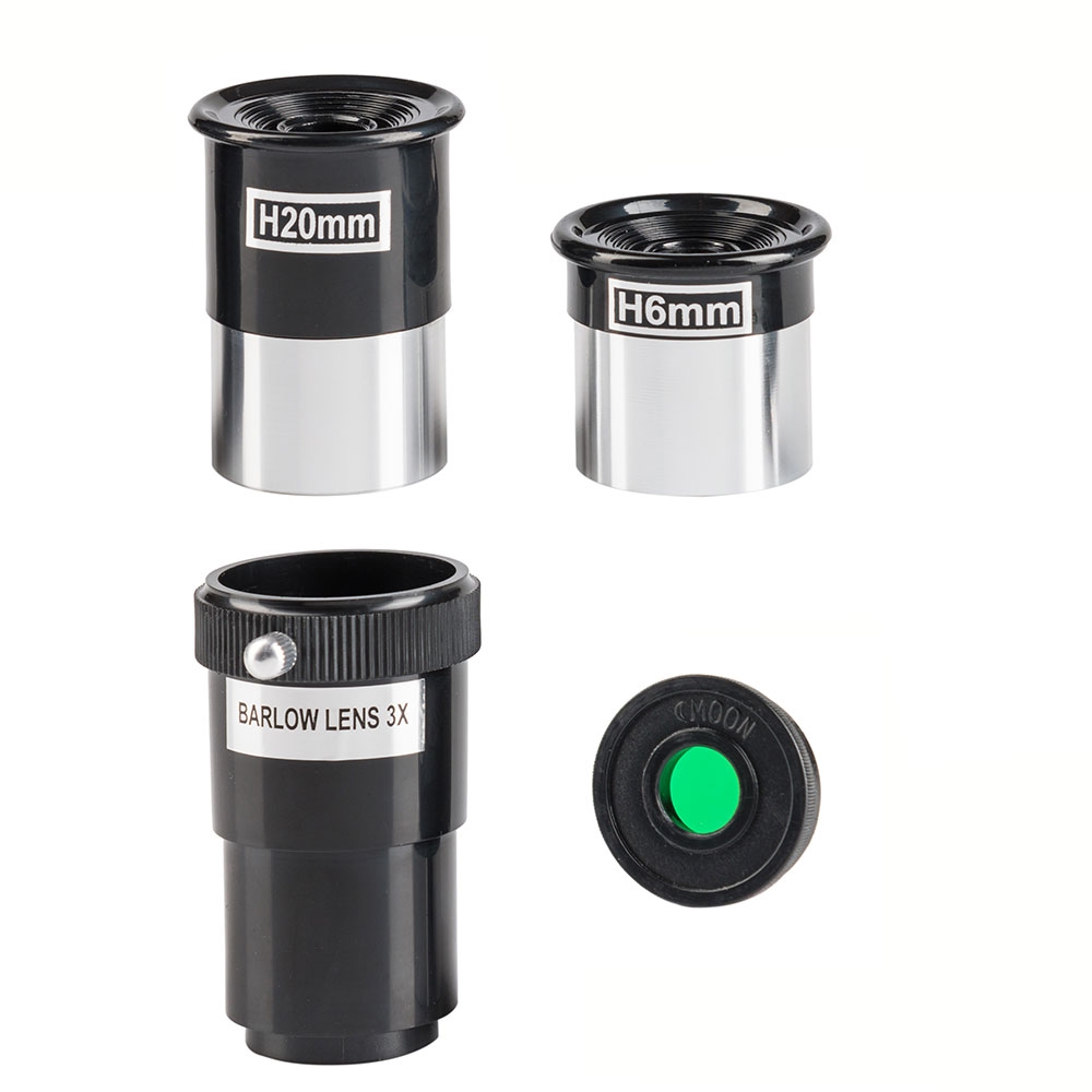 Этот телескоп поставляется в красочной подарочной упаковке в собранном виде и им можно начинать пользоваться сразу, достав из коробки. Комплектация содержит два окуляра 6 и 20 мм и трехкратную линзу Барлоу, что обеспечивает широкий диапазон возможных увеличений от 15 до 150 крат. Специально для наблюдения Луны производитель включил в комплект лунный светофильтр, с которым изображение Луны становится более четким и контрастным. Апертура трубы телескопа составляет 76 мм и позволяет собрать достаточно света и сделать возможным наблюдение тусклых объектов в ночном небе. Данная модель оснащена монтировкой Добсона, что не только экономит место, но и предоставляет пользователям простое и интуитивно-понятное управление телескопом. Небольшие размеры и вес телескопа облегчают транспортировку и позволяют взять прибор в путешествие, не требуя для этого много места.