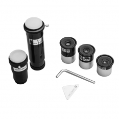 Посадочный диаметр окуляров составляет 0.96 дюйма, они устанавливаются через переходник в посадочное места на фокусере диаметром 1,25 дюйма, что позволит расширить набор окуляров и установить более профессиональную оптику. Телескоп устанавливается на алюминиевую треногу, состоящую из двух секций. Комплект поставляется в красивой полиграфической коробке.