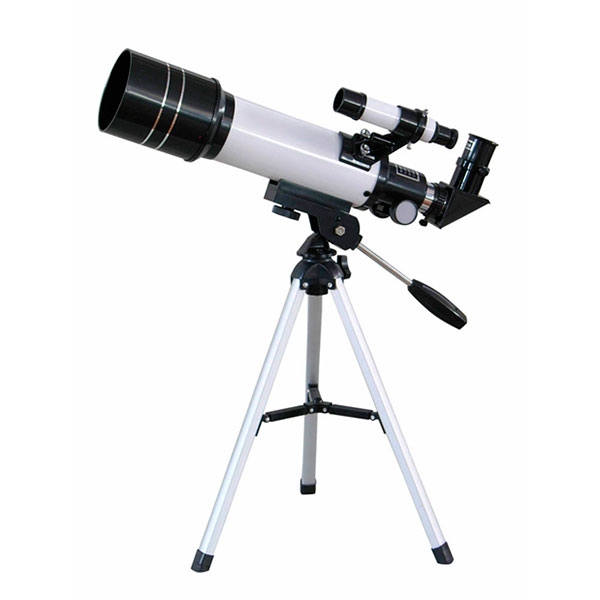 Короткофокусный рефрактор Sigeta Volans 70/400 на настольном фотоштативе с площадкой 1/4". Легкий и компактный прибор, подойдет как детям в качестве первого телескопа, так и взрослым в качестве походного инструмента. Телескоп дает не перевернутое зеркальное изображение.