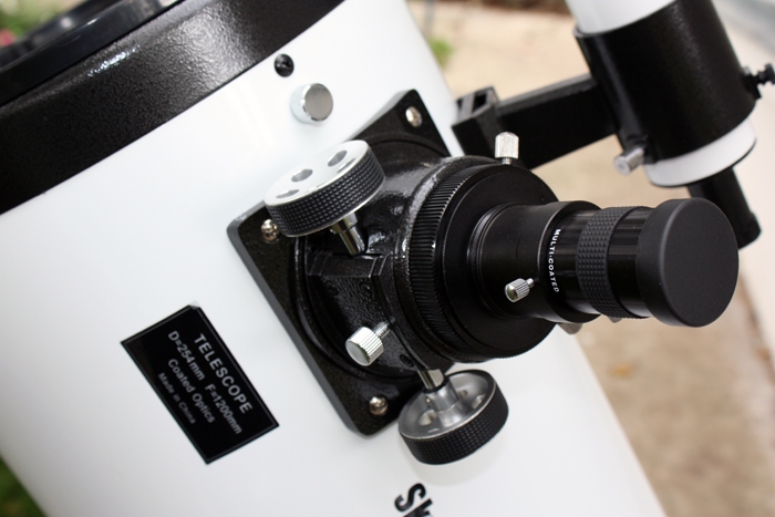 Телескоп имеет металлическую трубу и фокусировочный узел. Покрашен в белый цвет. Зеркала имеют защитное покрытие. Комплектуется 9х50 искателем и двумя окулярами Super 25 (48x), 1,25", и Super 10 (120х). Окулярный узел 2-дюймовый с адаптером под окуляры с посадкой 1,25 дюйма. Чистый вес телескопа 20,5 кг. Максимальное увеличение: 500 крат.