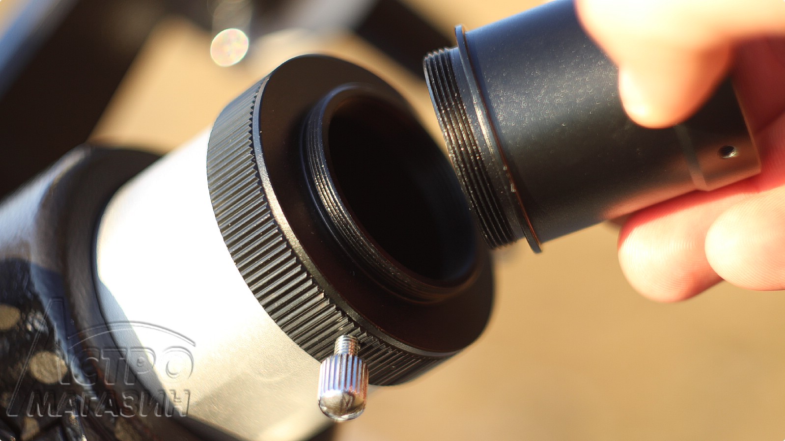Телескоп традиционно оснащён удобным фокусёром Крэйфорда с посадками на 1,25” и 2”. Один из переходников оснащён резьбой М42х0,75 для установки Т-кольца. С его помощью на телескоп можно установить фотоаппарат со съёмной оптикой.
