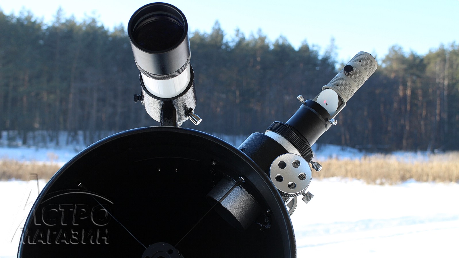 В комплекте с телескопом идёт мощный искатель 9х50. Он даёт очень качественную картинку и здорово помогает в поиске тусклых объектов. Эта деталь всегда была стандартной для всех DOB8.