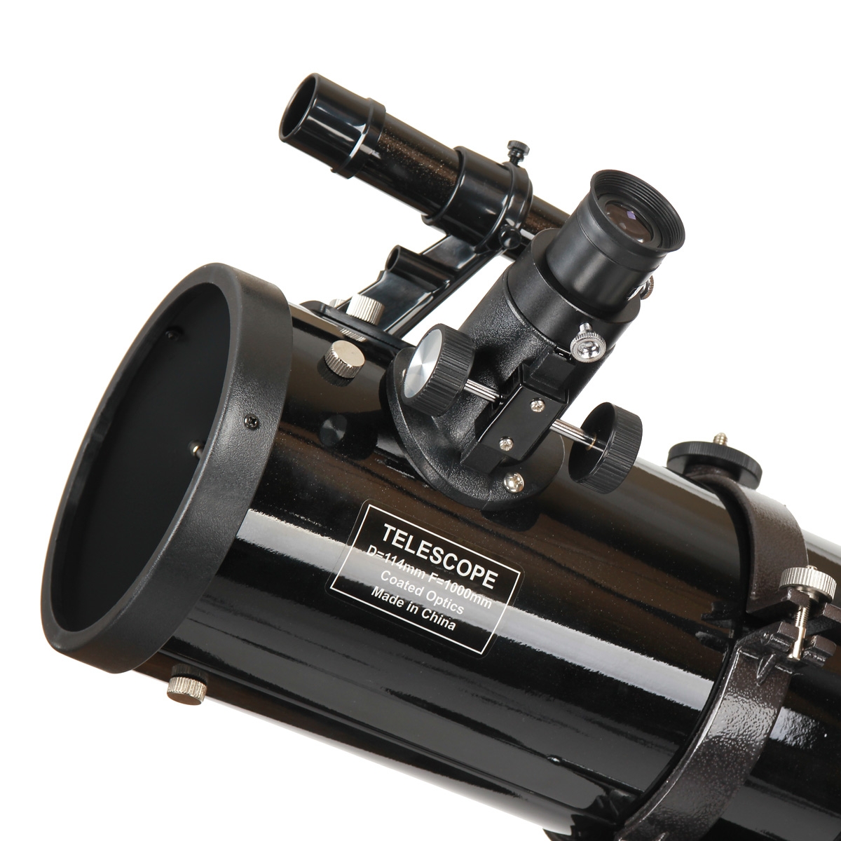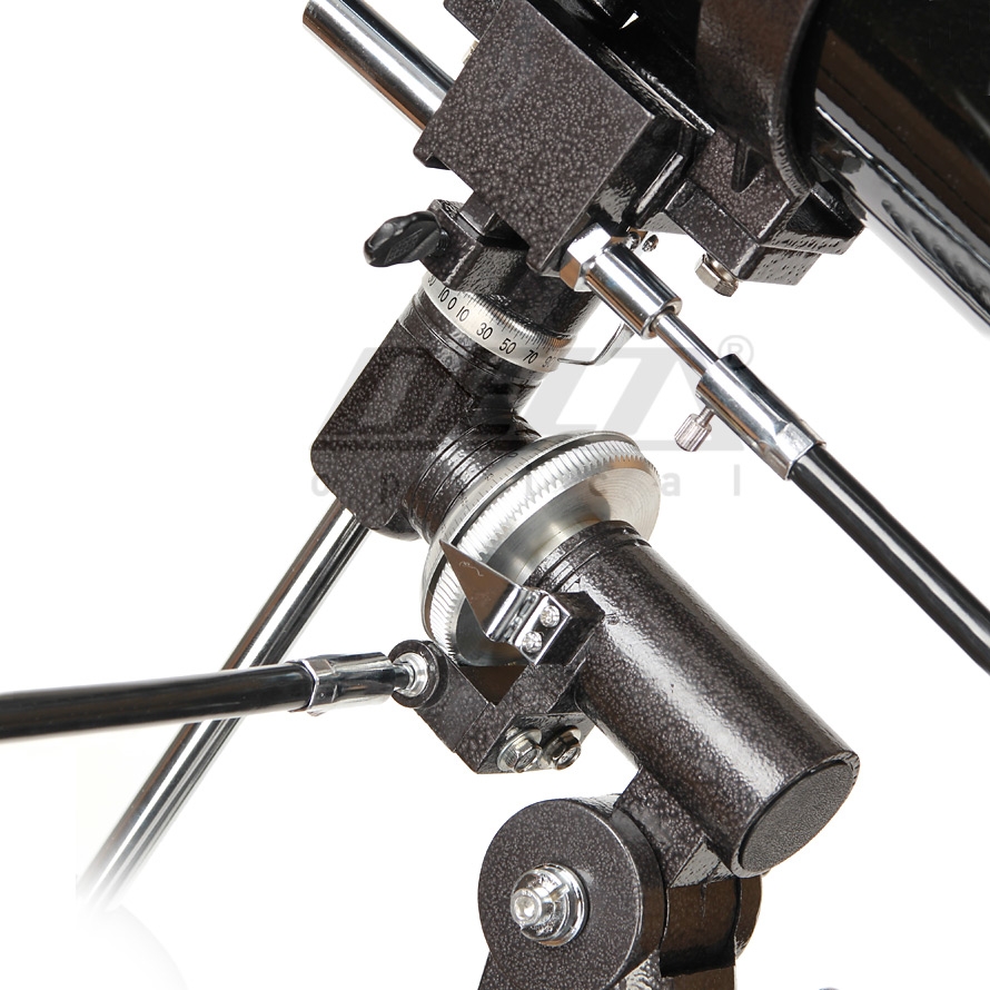 Телескоп комплектуется экваториальной монтировкой EQ-1 на аллюминиевом штативе и возможностью микрометрического наведения по двум осям. Комплектуется двумя окулярами Super 25 мм (40x), 1,25", и Super 10 мм (100х), 2-х линзой Барлоу (80x, 200х), искателем 5х24. Чистый вес телескопа 12 кг. Максимальное увеличение: 228 крат.