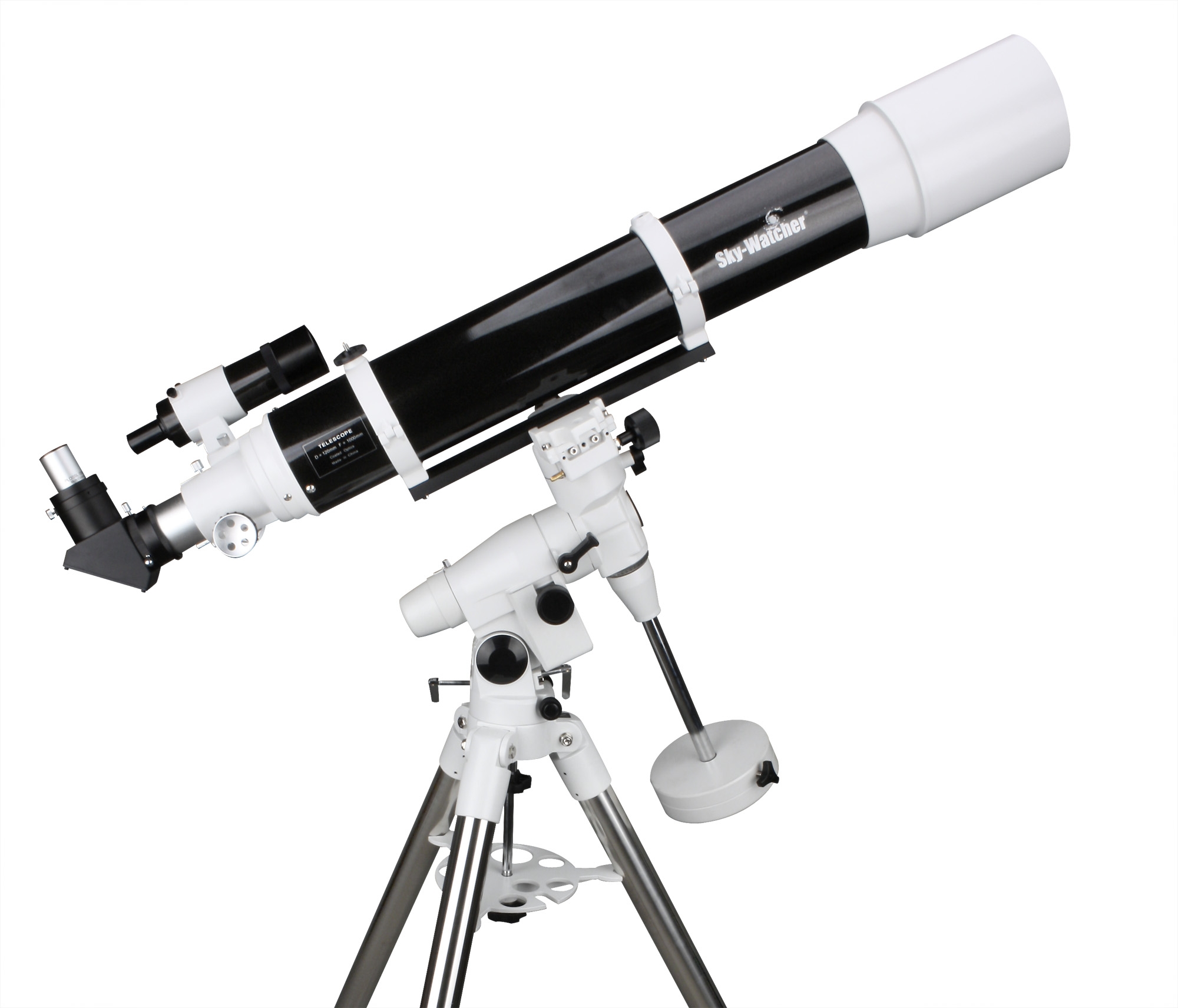 Телескоп комплектуется экваториальной монтировкой EQ5 на стальном штативе c микрометрическим наведением телескопа по обеим осям и возможностью установки электродвигателей с пультом по обеим осям телескопа. В комплект входят два окулярами Super Plossl 25 (40x), 1,25" и Super Plossl 10 (100x), 1,25", диагональное зеркало (90 град.), 2", искатель 9x50. Фокусировочный узел имеет посадку 2" и адаптер под 1,"25 дюйма. Чистый вес телескопа - 18 кг. Максимальное увеличение: 240 крат.