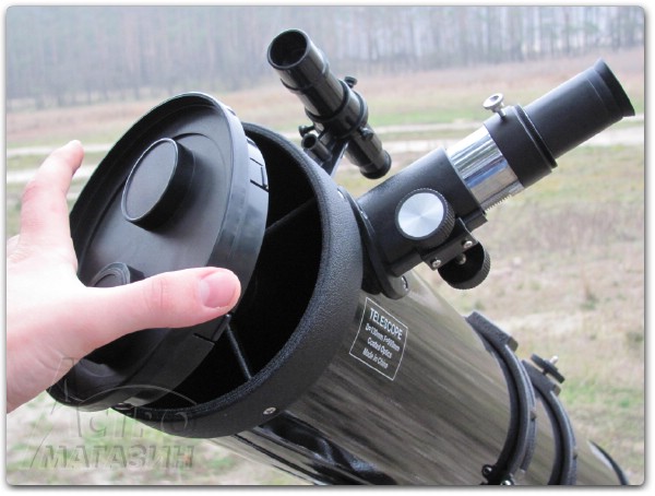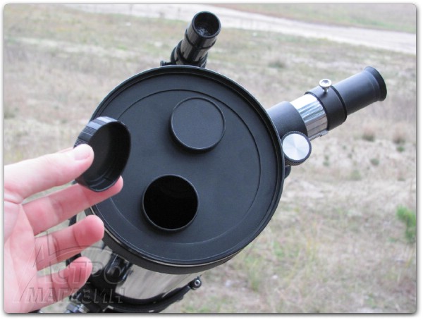 Крышка для трубы телескопа, как и у большинства рефлекторов Sky-Watcher, имеет дополнительное небольшое отверстие с собственной заглушкой. Оно предназначено для установки солнечного светофильтра. Намного лучший эффект при наблюдениях Солнца обеспечит полноапертурный фильтр, а имеющиеся отверстие можно использовать для проветривания трубы перед наблюдениями.