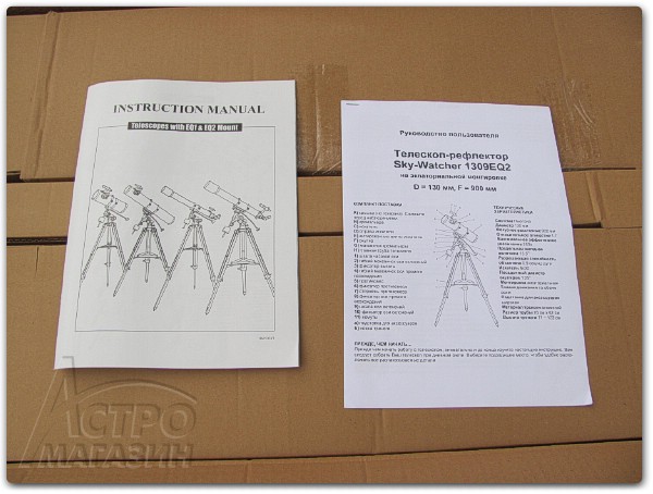 В комплекте находятся подробные инструкции по сборке и эксплуатации телескопа. Описано всё довольно подробно, поэтому перейдя ниже к описанию сборки, я хотел бы расставить лишь небольшие акценты на важных моментах. А с процессом установки телескопа в целом у пользователя не должно возникнуть существенных вопросов.