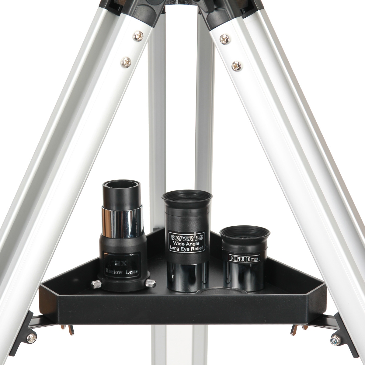 Комплектуется двумя окулярами Super 25 мм (36x), 1,25", и Super 10 мм (90х) , 2-х линзой Барлоу (180х), диагональным зеркалом, дающим прямое зеркальное изображение, искателем 6х24. Вес телескопа в упаковке - 14,5 кг. Максимальное увеличение: 140 крат.
