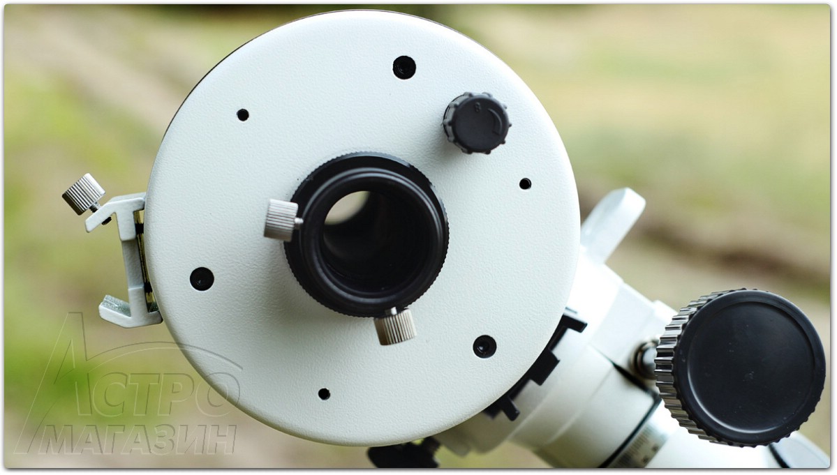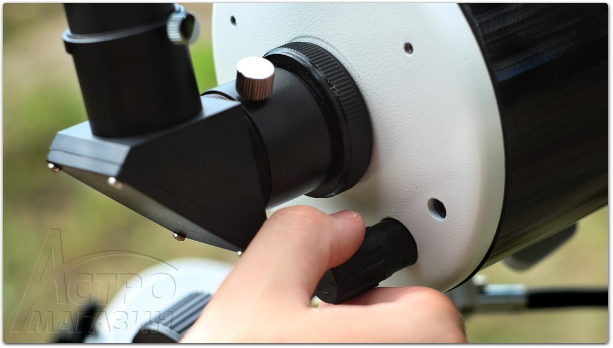 В тыльной части трубы находится небольшая ручка, отвечающая за фокусировку изображения. Как и в большинстве подобных систем, наведение резкости здесь происходит посредствам подвижки главного зеркала. В 127-м этот механизм работает очень мягко и плавно, заметных смещений изображения при смене направления фокусировки замечено не было. Хвостовик окулярного узла имеет посадку 1,25" и оснащён резьбой М42х0,75 для установки фотокамеры.