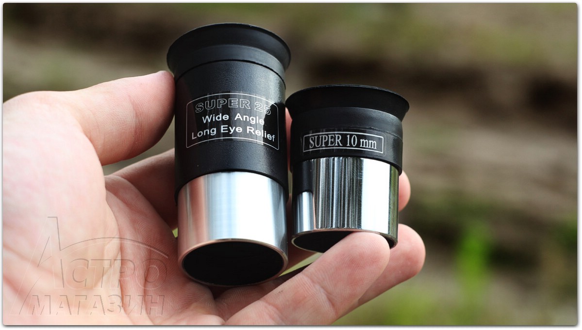 Комплектация телескопа является обычной - пара недорогих окуляров 25мм и 10мм с увеличениями 62х и 154х. Бюджетные окуляры не позволят раскрыть оптический потенциал телескопа, так что со временем стоит подумать об их замене. К счастью, системы кассегреновского типа не особенно требовательны к выбору окуляра. Учитывая то, что телескоп будет использоваться в основном для наблюдения планет, гнаться за дорогими широкоугольниками смысла нет. Хорошим выбором станут добротные окуляры с большим выносом зрачка или качественные ортоскопики, которые обеспечат наилучший контраст картинки.