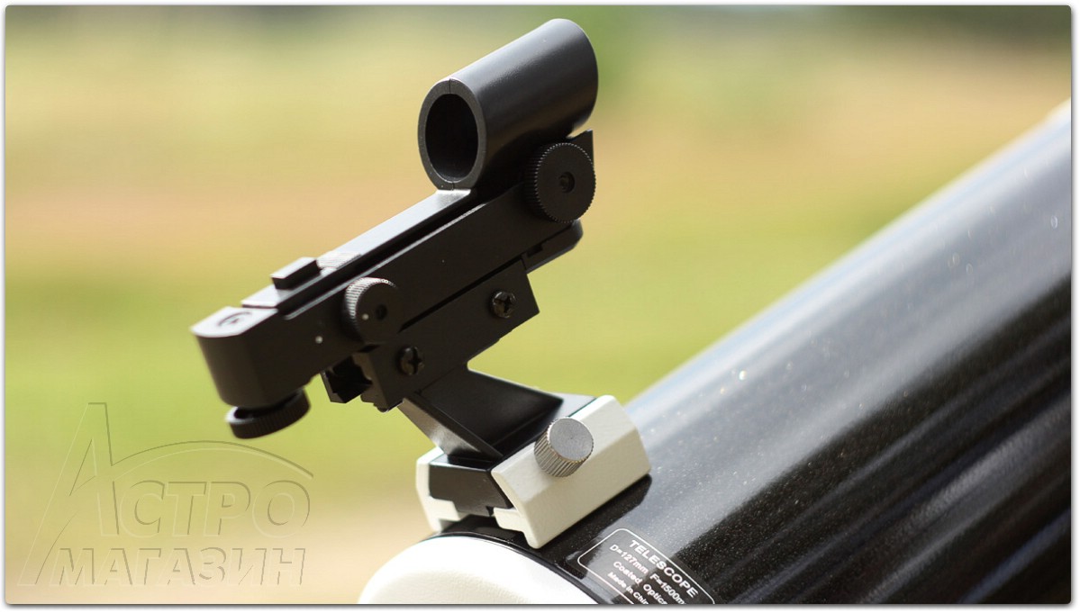 Телескоп укомплектован искателем коллиматорного типа Red Dot. И, если для короткофокусных инструментов он подходит как нельзя лучше, то в случае с МАК-ом удобнее был бы оптический искатель. Наблюдения Луны, планет или компактных дип-скай объектов не подразумевают широкого угла зрения, поэтому на больших увеличениях точно наводится с Red Dot-ом на объект не получится.