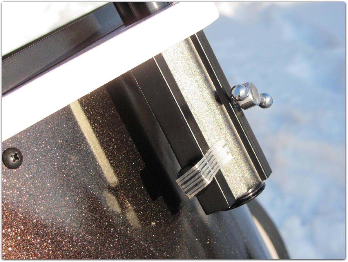 Стоит сказать и о том, что с завода фокусировочный узел имеет наклон 45 градусов относительно горизонта, это стандарт для всех Добсонов от Sky-Watcher. Но при наблюдениях в DOB16'' это очень неудобно, во многих положениях трубы добраться до окуляра можно только став на лестницу.