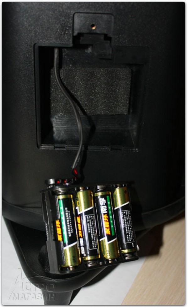 В инструкции имеется важное предупреждение о том, что многие блоки питания имеют выходное напряжение больше, чем указано на них и это может привести к выходу монтировки из строя. Блок питания в комплекте не предусмотрен, поскольку питание монтировки может осуществляться как от батареек, так и от сети. Батарейный блок рассчитан на установку 8 стандартный пальчиковых батареек типа "АА".