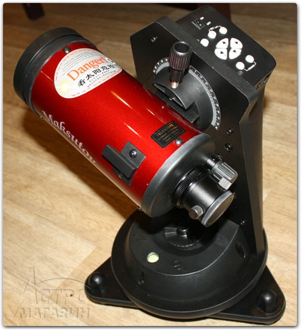 В комплекте с монтировкой идет труба телескопа. Она достаточно компактна (длина немногим меньше 25 см.), легкая (ее вес 1243 грамм) и окрашена в блестящий темно-красный цвет. На корпусе указана фамилия автора оптической схемы, нашего соотечественника Максутова и год появления этой схемы - 1943.