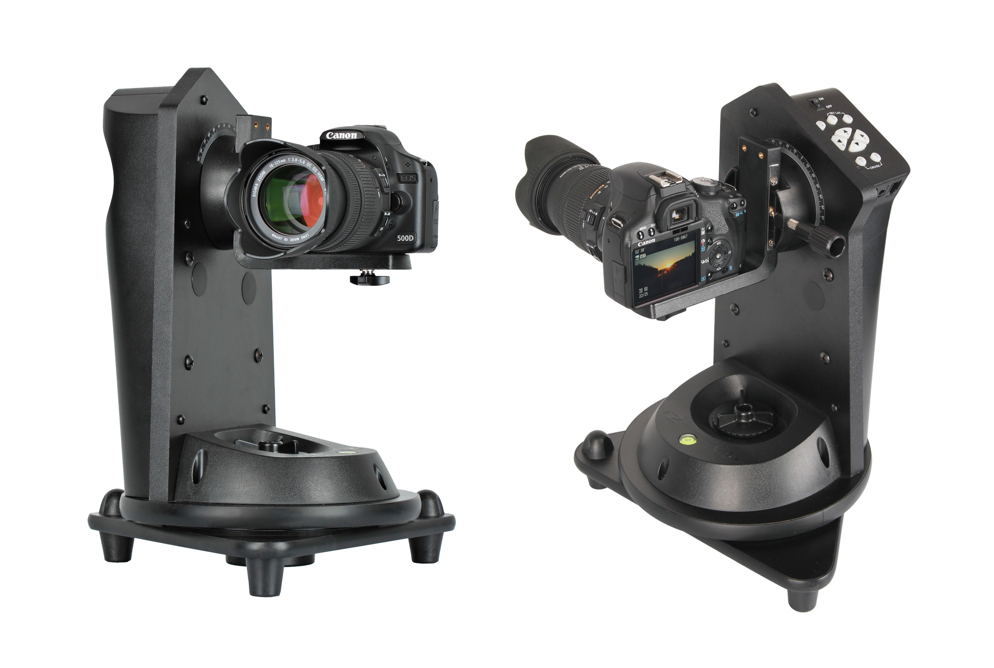 В корпус телескопа встроен стандартный пульт SynTrack, с расширенным функционалом. В нём встроена память на 6 позиций и возможность запустить монтировку в циклическое отслеживание каждой из этих точек с помощью фото или видео камеры - когда монтировка наводиться на очередную точку - она даёт команду на спуск затвора чрез стандартный 3,5мм порт, находящийся на корпусе фотоапарата. Есть возможность подключения пульта SynScan, что значительно расширяет функциональные возможности прибора.