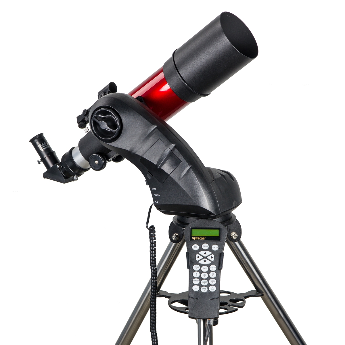 Монтировка телескопа Sky-Watcher Star Discovery - классическая полу-вилка с выносом места крепления телескопа от центра вертикальной оси триноги для возможности наблюдения объектов в зените. За управление и наведение монтировкой отвечает пульт-компьютер SynScan версии 4.0. Монтировка оборудована энкодерами по двум осям - это дает возможность вручную наводить телескоп, не сбивая настройки системы автонаведения - монтировка автоматически определит новое положение и продолжит четко следить за новым объектом. Также эта система позволит вернутся к объекту наблюдений после случайной подвижки. Голова монтировки устанавливается на мощную триногу со стальными ногами.