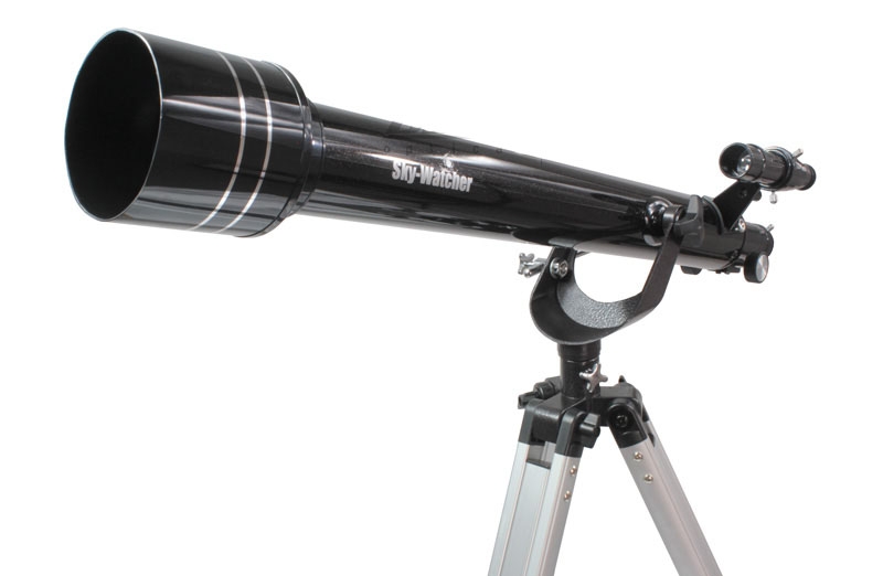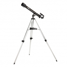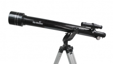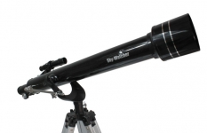 Озвученным требованием отлично соответствует модель фирмы Synta из линейки для начинающих любителей астрономии - Sky-Watcher 607AZ2. Это классический 60мм телескоп рефрактор, установленный на простой азимутальной монтировке. Объектив телескопа имеет фокусное расстояние 700мм, это обеспечивает относительное отверстие около 1/12. Довольно большой фокус телескопа меньше подвергает изображение влиянию хроматической и сферической аберрации. Объектив телескопа, также как и линзы комплектных окуляров, имеет просветляющие покрытие, что обеспечивает лучший контраст и цветопередачу изображения.