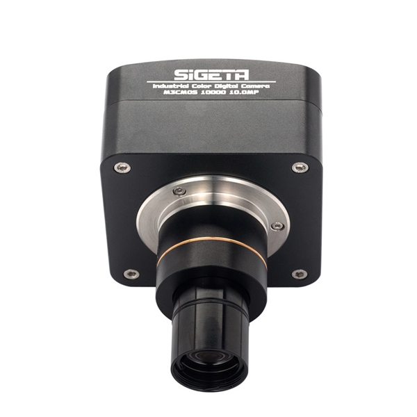Камера состоит из двух компонентов: собственно, «тела» камеры с резьбой C-Mount и оптического блока – адаптера для микроскопии. Одной стороной адаптер вкручивается в резьбу камеры, а другая подсоединяется к оптическому порта микроскопа. Если посадочный диаметр «электронного окуляра» меньше диаметра окулярной трубки, между ними устанавливается кольцевой переходник из комплекта.