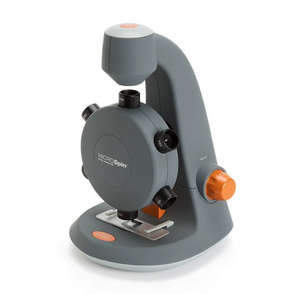Настольный цифровой микроскоп для просмотра результатов исследований на экране ПК, записи экспериментов на фото и видео. Своим названием модель обязана уникальному револьверному устройству – колесу, по периметру которого установлены 6 объективов с различными фокусными расстояниями. Смена рабочего объектива и грубая фокусировка на выбранной кратности производятся простым вращением колеса объективов. Благодаря такому конструкторскому решению «микроскоп-мельница» настолько прост в управлении, что пользоваться им сможет любой ребенок, который уже умеет включать компьютер.